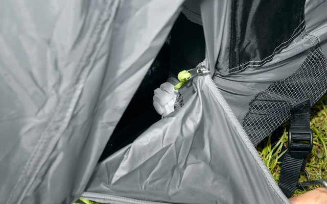 Doppelt abgedeckte Reißverschlüsse sorgen für zusätzlichen Wind- und Regenschutz an Eingängen und Fenstern.