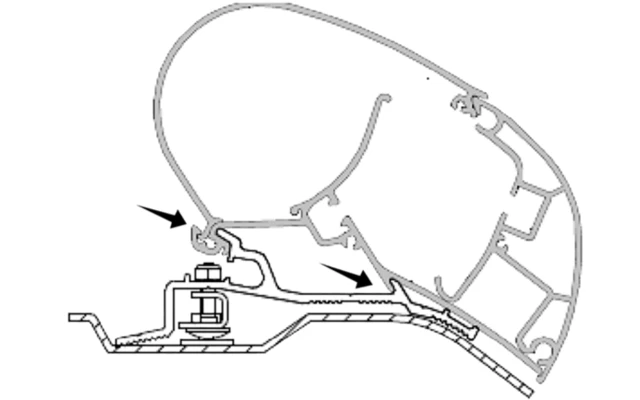 Passender Adapter zur Anbringung der Dometic PR2000 Dachmarkise an die Fahrzeuge Fiat Ducato, Citroen Jumper und Peugeot Boxer.