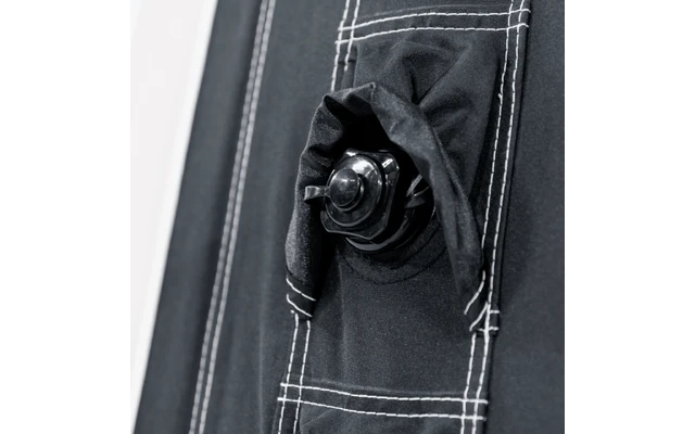 - Einpunkt-Aufblassystem: Luftvorzelte und -pavillons mit Einpunkt-Aufblassystem werden von nur einem externen Aufblaspunkt aufgeblasen