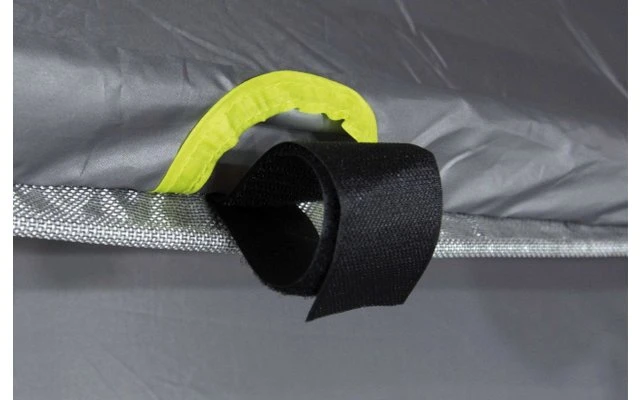Das Vordach kann durch drei verschiedene Befestigungsmöglichkeiten am Fahrzeug angebracht werden. Der Doppelkeder mit 5,8/7,2 mm ist passend für alle gängigen Kederschienen. Die Klettbandschlaufen können an der Dachreling fixiert werden. Eine weitere Möglichkeit ist das Einziehen des Schleusenstabs in den Hohlsaum, der mittels Klemmen oder Abspannleinen fixiert werden kann. Das Trento ist für den schnellen Einsatz geeignet und nimmt wenig Transportgewicht sowie Volumen in Anspruch.